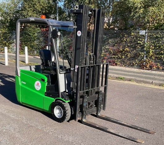 Cesab B320 3-Wheel Electric Forklift Truck, 2000Kg Capacity, 5000mm Lift Height, Triplex FFL mast, Sideshift, 2019 machine with 1800-key on hours, Front Screen and Roof, Truck will come serviced and have a 12-month Thorough Examination (LOLER/PUWER).